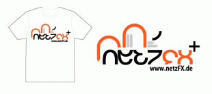 Das T-Shirt „netzFX Logo 2003“ war das erste Motiv in unserem Online-Shop. Das Logo basiert auf einer Designershock Schriftart und ist vollständig in Adobe Illustrator realisiert worden.